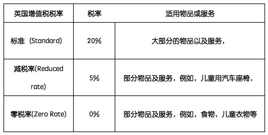 在英国,增值税有三种税率: 标准税率(Standard)、减税税率(Reduced rate),以及零税率。