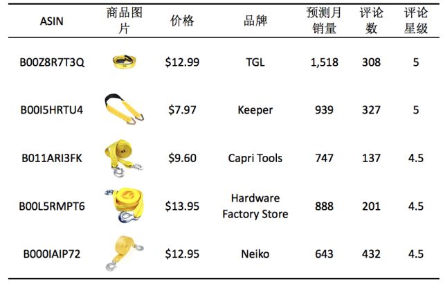 本文选取2018年1月亚马逊美站Best Sellers榜单中Tow Straps品类下的Top100商品作为市场研究目标。