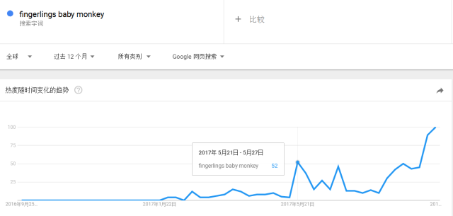 从2017年5月开始FingerlingsBaby Monkey的搜索量开始上升,截止到9月23日仍是上升势头。
