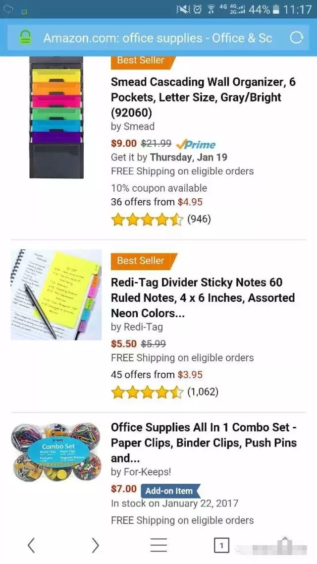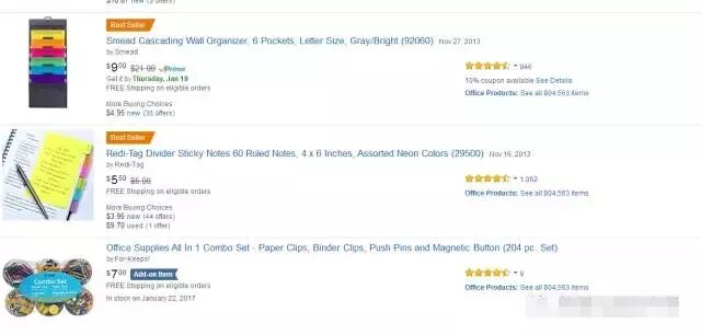 现在我们在亚马逊的前台输入Office Supplice, 办公用品这个关键词,来看下在电脑端与移动端的不同