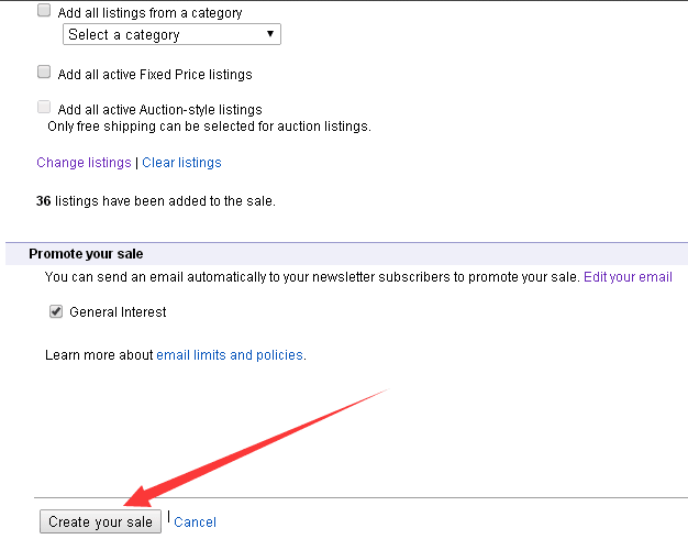 8. 当添加完产品之后,点击creat your sale进行确认。