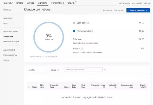 最后,当促销活动进行了一段时间之后必须对效果做出评估并改进,大家可以通过Seller Hub中Marketing下级菜单Promotions来查看促销的详细数据。