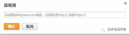 然后,双击图片可以配置点击图片的链接,只有4种类型的链接可以添加:PC店铺首页地址、PC商品页地址、PC店铺的二级分类地址、无线活动页面。如下图:
