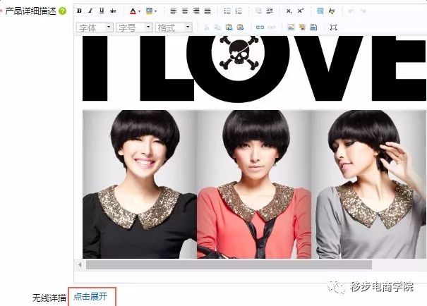 1.您可以在PC端产品详细描述的编辑底部找到“无线详描”的编辑入口,点击即可展开速卖通无线详描编辑器,在该编辑器里输入您在无线端要展示的文字和图片等最后提交即可。