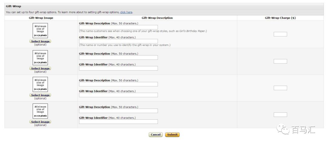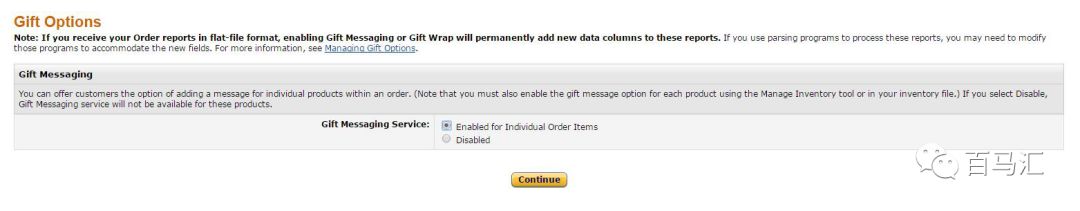 B.如果是Gift Wrap(礼品包装),可以选择edit选项,选择"Enabled for Individual Order Items",之后选择continue,