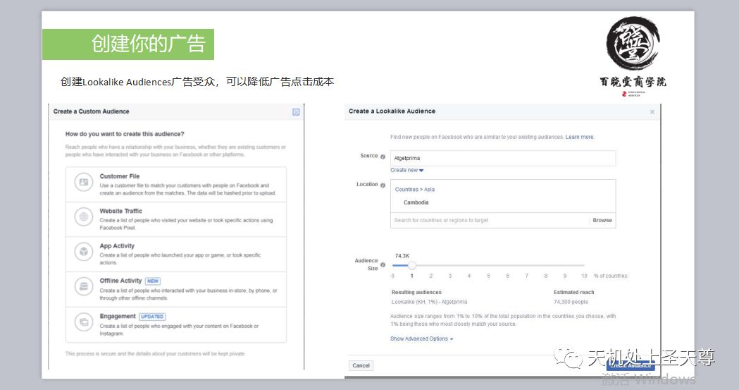 Facebook广告,特别是Custom Audiences和Lookalike Audiences功能。Custom Audiences允许广告商使用过滤器和条件来创建