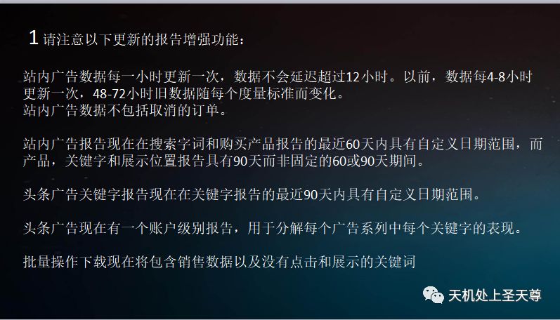 亚马逊后台广告页面的调整如下:(请注意以下更新的报告增强功能)