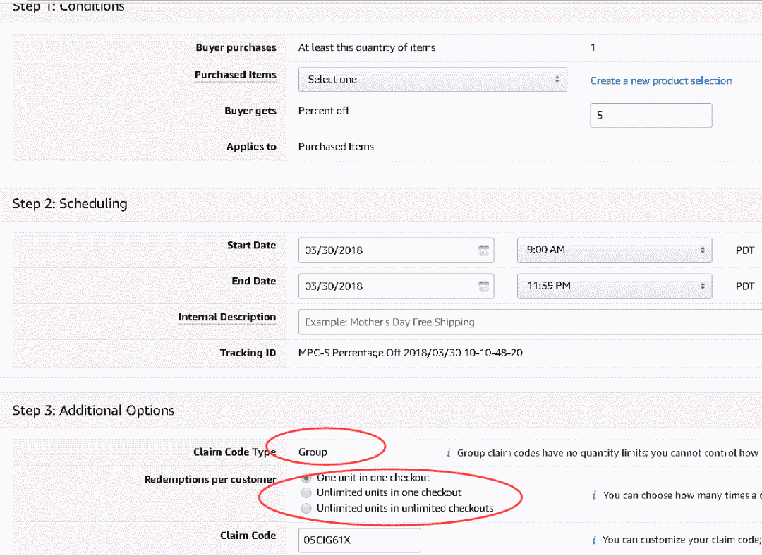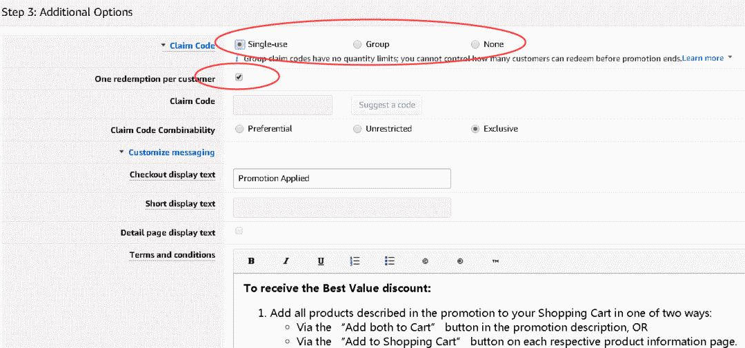 在social media promo codes,我们注意到 code type 已经默认为Group,但是有三种方式来限制code的使用。