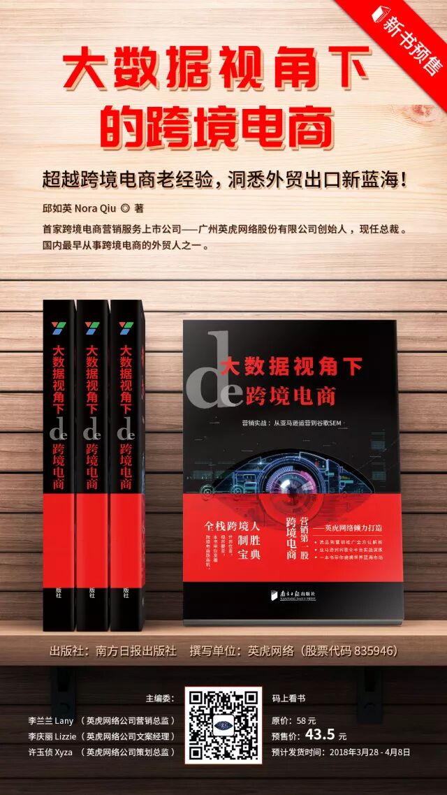 对于跨境电商人来说,《大数据视角下的跨境电商》一书,不仅从目前最新的视角、行业动态给你诠释跨境电商这个行业,而且也在教你用大数据思维、大数据分析工具时时观察和分析这个行业,让你保持站在行业的前沿,捕获先机。