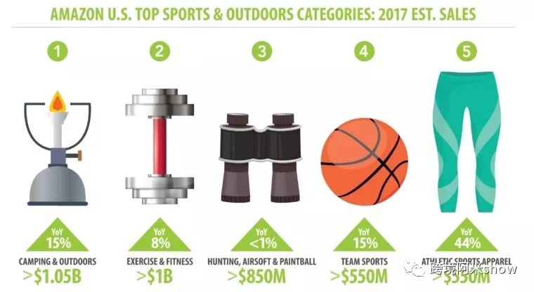数据显示,运动户外商品虽然在亚马逊整体品类销售中去年只有15%的同比年制作,但在过去数年中一直保持高速增长,同比年增长平均达20%。
