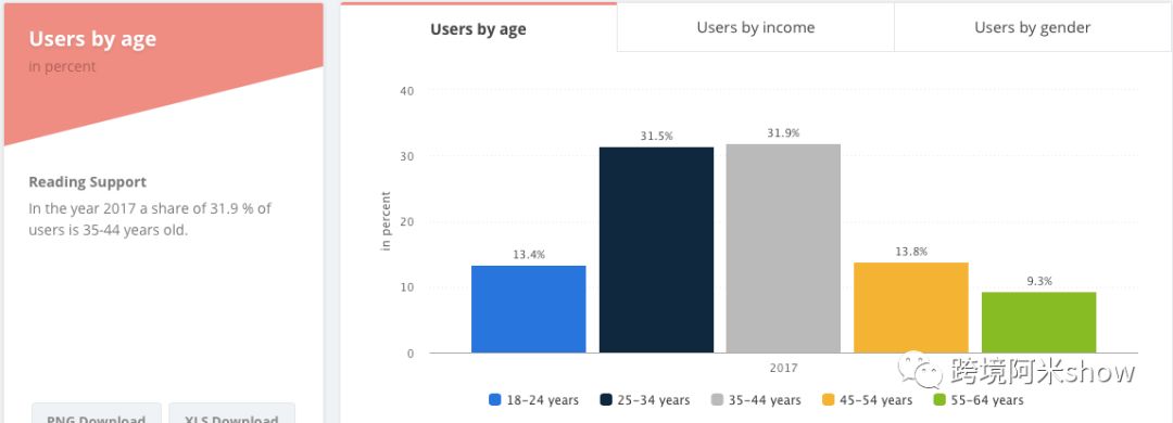 2017年数据显示:31.9%的运动户外消费者年龄在35-44周岁