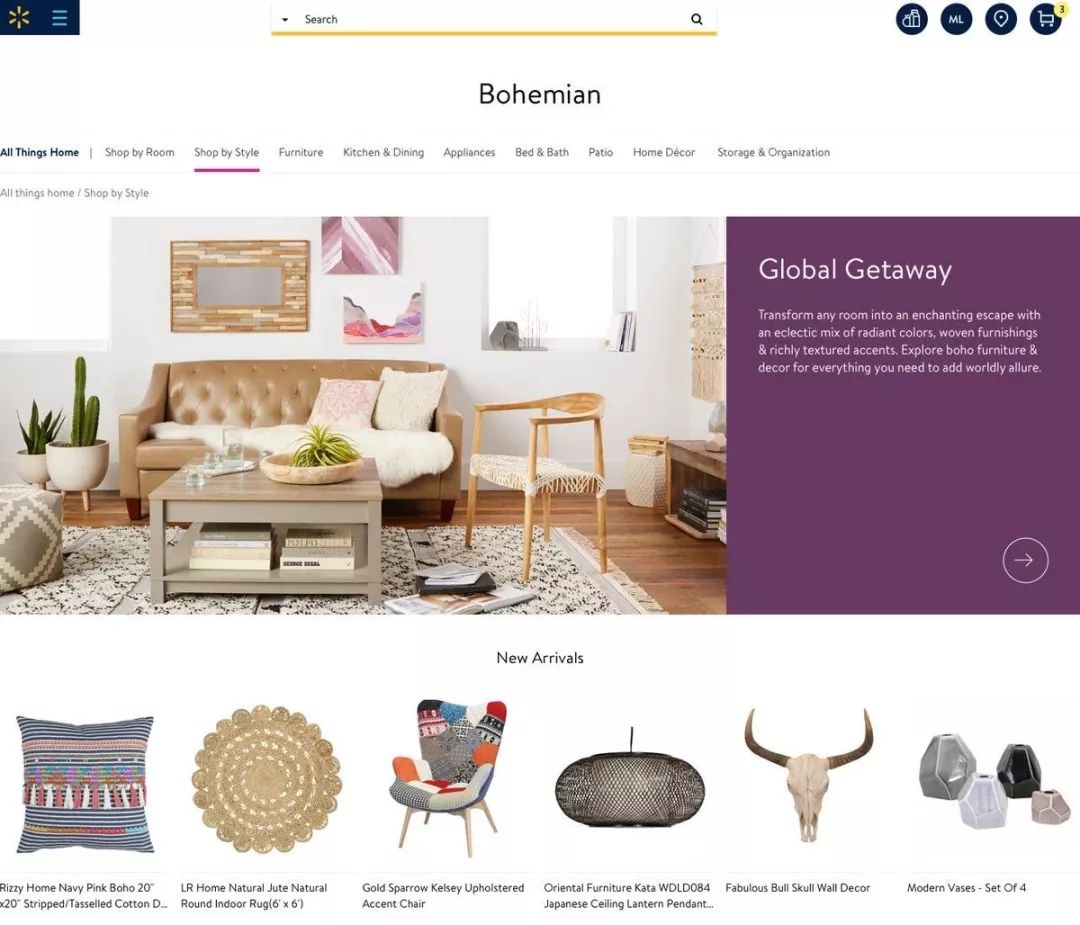 沃尔玛的标志在新网站上几乎看不到,除了顶部的一个切换栏。乍一看,购物者可能没有意识到他们正在通过Walmart.com滚动。