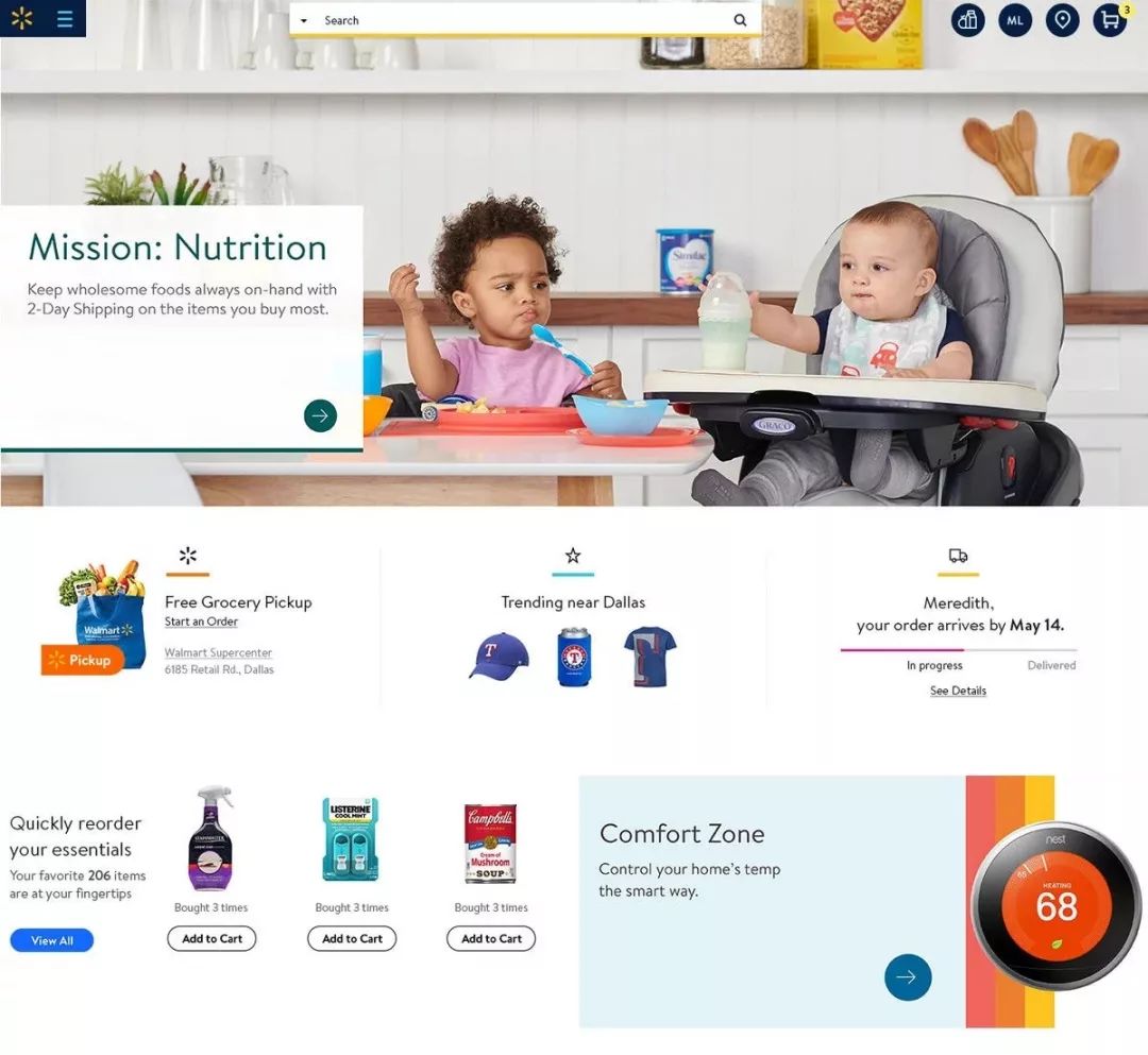 沃尔玛试图通过改版后的网站帮助购物者根据他们的位置,在网站上找到最畅销的商品。同时,购物者还可以看他们当地商店的档案,告诉他们该商店是否有在线杂货店或便于再次订购。
