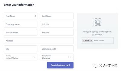 Shopify使用界面干净简单,可以制作简单的名片。但是Shopify不支持定制背景,只能使用白色背景。另外Shopify不支持定制名片背部设计。但是,你可以把logo放在名片正面。只要输入姓名、公司名、职位、电子邮箱、电话号码和公司地址等等信息,就可以生成一张名片了。Shopify会把做好的名片发送到邮箱,你只要下载下来就行。