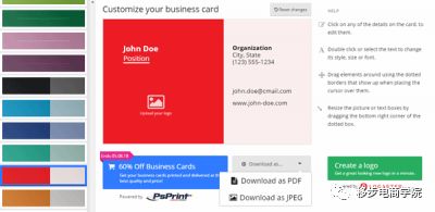 DesignHill是另一款名片制作软件,可以支持不同尺寸的名片。你可以设置名片的长度和宽度、背景、线条等来制作出一个更加专业的名片。你需要输入姓名和邮箱地址,名片会自动发送到邮箱。但是,这个工具不像Canva那样强大,它不支持名片的背部设计。导出格式也只能选择JPG格式。