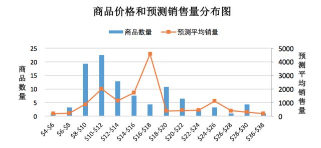 在本期Women's Fascinators品类Best Sellers榜单前一百的商品中,商品最高价$37.95,最低价$5.99,平均价格$15.18。该品类商品价格跨度很小,商品价格较为集中,在$10-$12的商品最多,有23款商品,且预测平均销量较高,适合作为定价参考;$16-$18有着最大的预测平均销量,有4款商品,尚存市场空间。