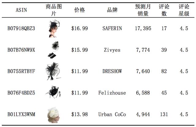 本文选取2018年4月亚马逊美站Best Sellers榜单中Women’s Fascinators品类下的Top100商品作为市场研究目标。