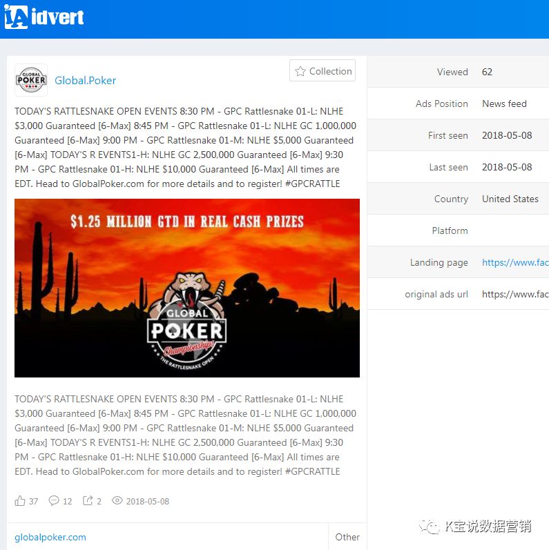 一般来说,棋牌游戏的广告素材大多都是动画类的虚拟场景或者是游戏的试玩场景,而今天K宝发现的这款棋牌游戏的素材基本都是真人实拍,要不是它的Title叫Global Poker,估计很多人会误以为这是个商务广告呢。