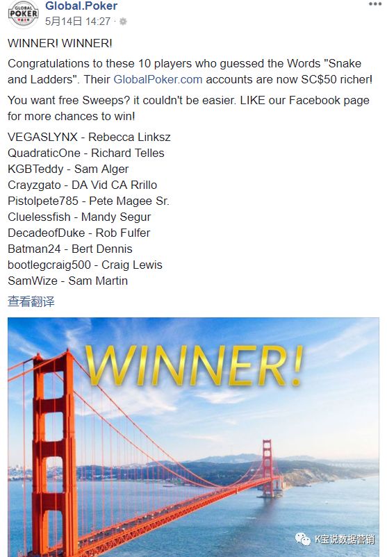 3.如果觉得话题单调,主页post可以切合产品主题做一些满足受众心态的小活动,比如棋牌类爱好者往往是带有博弈心理的,所以定期做些有奖竞猜调动大家的积极性也不错。