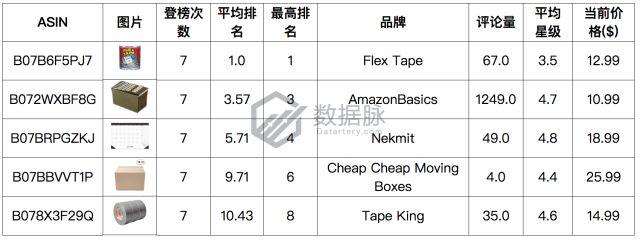 本期还有另一款来自主营胶带产品品牌Tape King的胶带产品也跻进榜单前五,该胶带可用于各种表面,适用于工艺品、家居装修、维修等。