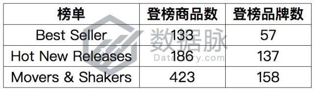 根据上周 Movers & Shakers 榜单上各个品牌下商品的登榜次数,我们对登榜的品牌进行了排序,其中排名靠前的五个品牌如下所示: