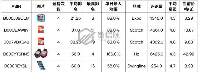 骆探长(shujumai.com)发现,在上周Office Products品类的Movers & Shakers榜单中,排行前列依然有马克笔的身影,本期上榜的马克笔来自品牌Expo,且以最高排名第8、平均排名21.25位列榜单首位;