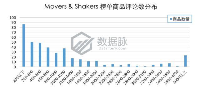 在上周登榜Office Products品类Movers & Shakers榜单的商品中,单个商品拥有的最大评论数为14363.0,最小评论数为6.0条,平均评论数1203.91条,评论平均星级4.38星。骆探长(shujumai.com)发现,,相比前两期分析,平均评论数大幅增加;其中,评论数在200条以下的商品相对较多,占上榜商品总数的20.33%;同时有11.82%的商品评论数在200条至400条之间,另有11.35%的商品评论数在400条至600条之间。此外骆探长(shujumai.com)发现,上周有多达23款登榜商品的评论数超过了4000条,占上榜商品总数的5.44%。