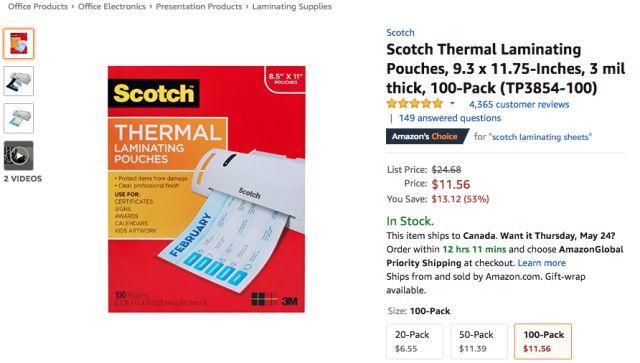 另有两款透明塑封膜跻身榜单前五,来自品牌Scotch适用于Scotch塑封机;