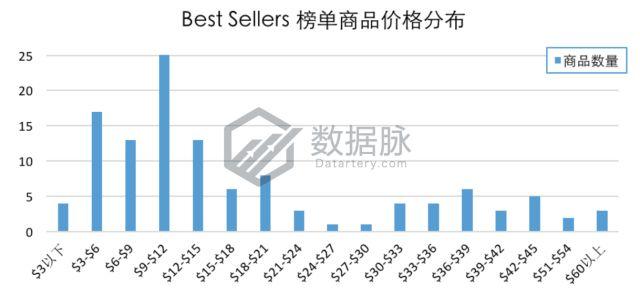 二、BestSeller 榜单分析:$9-$12之间的商品数大大增加,价格分布重心略往高处移动