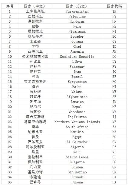 接中国邮政通知,中国邮政线上挂号小包将暂停发往巴西、秘鲁等35个国家,具体国家见下。北京时间2018年06月01日0:00开始将无法创建此35国的中国邮政挂号小包线上发货物流订单。建议卖家将相关路向的物流方案调整为无忧标准或e邮宝。