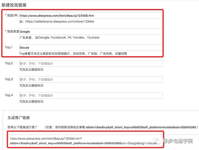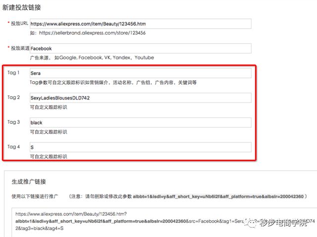 注意:Tag里输入内容时不能有空格,如果需要短链接的卖家,可以使用谷歌或者其他短链接生成工具,一般情况下, 不会对效果追踪产生影响。