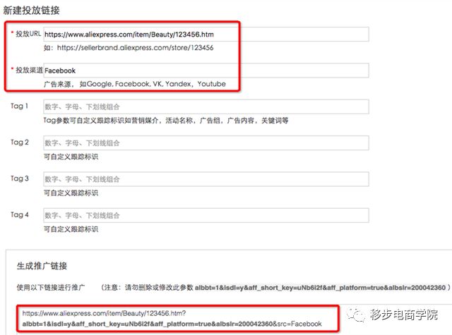 标“*”号为必填选项,但是为了更详细的判断站外引流效果,我们为大家提供了Tag1,Tag2,Tag3,Tag4, 卖家可以实际需要选择是否填写。