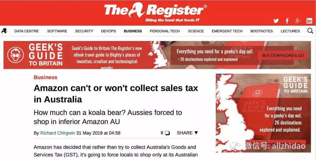 这项政策让绝大多数澳洲境内的线下和线上商家觉得非常不公平,所以澳洲早在2015年决定向所有海外购买的商品开征10%的GST,但是由于澳洲政府换届所以这条政策被推迟到了今年7月1日开始执行。虽然eBay还在与澳洲政府抗争,但是亚马逊却决定所有澳洲消费者只能从亚马逊澳洲站点购买商品,并需要缴纳10%的GST。