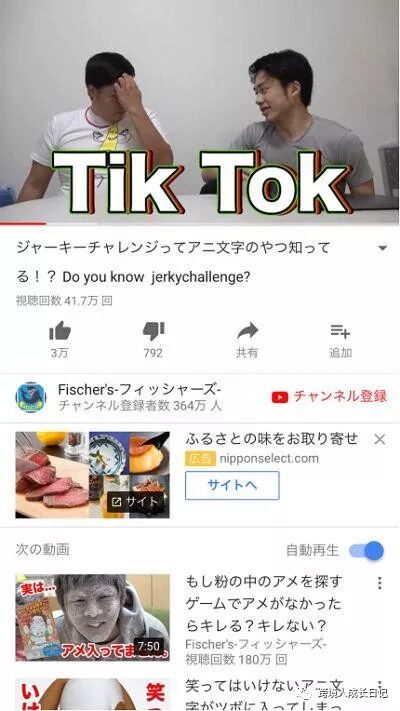 连日本YouTube上最著名的两个网红Hikakin和Fischer's也做了Tik Tok相关的视频