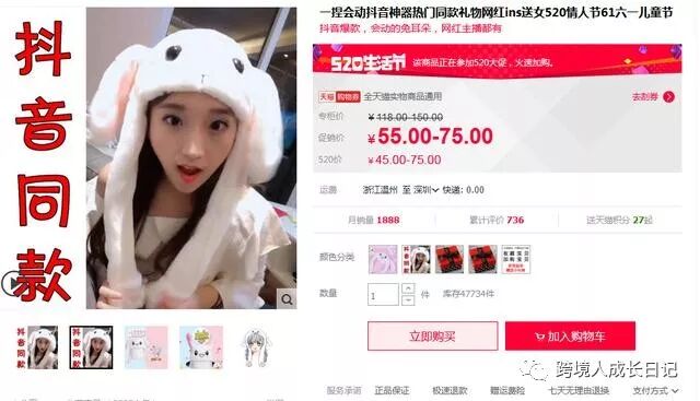 抖音一些比较火的音乐,也带动了一些淘宝 天猫店铺的爆单;如图: