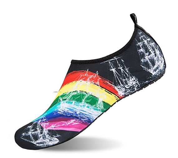Amazon Best Sellers标题对其描述为“Womens and Mens Water Shoes Barefoot Quick-Dry Aqua Socks for Beach Swim Surf Yoga Exercise”,男女通用赤脚穿快干水鞋,适用于沙滩、游泳、冲浪、瑜伽等场景。