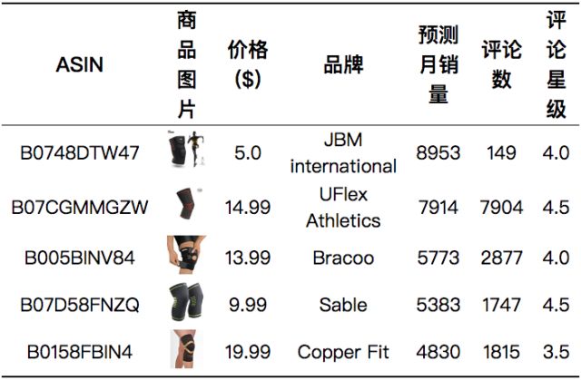 本文选取2017年6月亚马逊美站Best Sellers榜单中Knee Braces品类下的Top100商品作为市场研究目标。