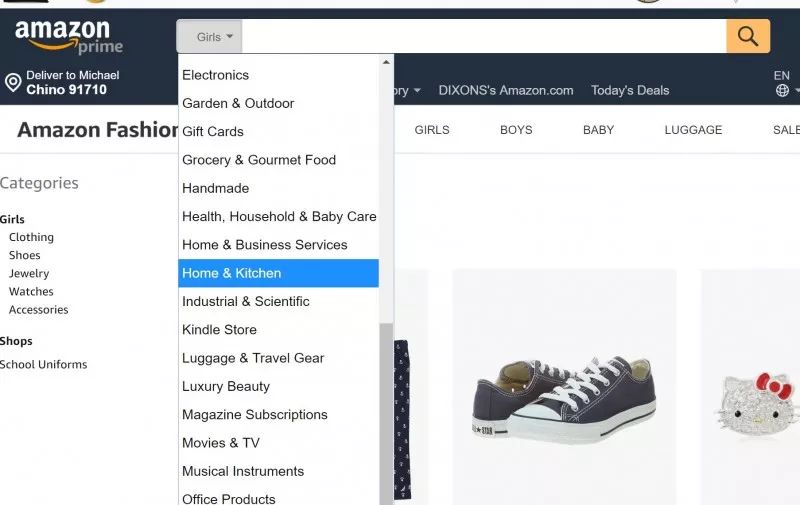 亚马逊有一种search搜索之外的找到产品的模式,我们称之为browse。大致来说就是根据BTG类目条,从大类目一步步到小类目,最后找到产品购买,这整个过程是没有通过任何关键词来走的,下面我以图示的模式给大家展示一下全过程: