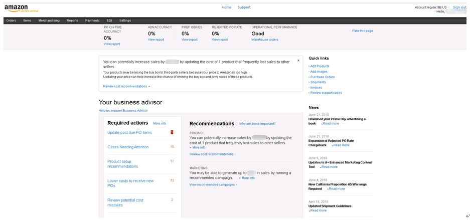 1.市场上有人买到一两万的账号,对比别人用8-12万买到的账号,内心窃喜一番,觉得自己赚到了。拿到手后,登陆进后台,看到有vendor code,还有advantage标志,感觉很高级。然后,这个advantage只能上Book, Music, DVD, VHS类目的产品,对于大部分卖家这个号并没有什么用!!!!!