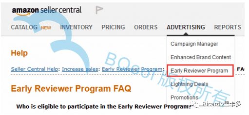最近这个功能正式上线了!美国亚马逊卖家后台的[Advertising]>[Early Reviewer Program]已经可以看到啰!
