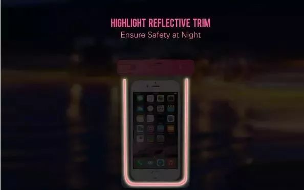 这款产品适用于市面6寸以下的屏幕手机,iPhone7可隔着防水袋指纹解锁;可支持个性定制LOGO、皮料颜色、潜水料颜色、丝印颜色、外观设计;深层防水,游泳必备;另外边框带有夜光效果,夜间也不怕丢,也可以在一定程度上保证安全。