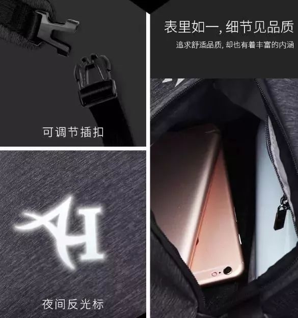 另外,这款产品也是采用尼龙材质,在防水上面是有点门道的,既“包罗万象”,又防水防尘,让你轻松出行,彻底解放双手!
