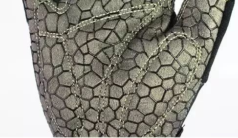 产品内垫设有抗震SBR,可以有效缓解运动时对手部的震动,具有减震功能;手掌部位填充记忆棉,防滑效果好;手背采用莱卡材料透气性好,排汗方便;质感十足的植胶logo魔术贴,会根据不同需求调节松紧使用者再也不用担心产品不适合手型;符合人体工程学的自然弯曲手指设计,可以增加手的灵活性和舒适性;指叉采用莱卡材质,灵活、透气。