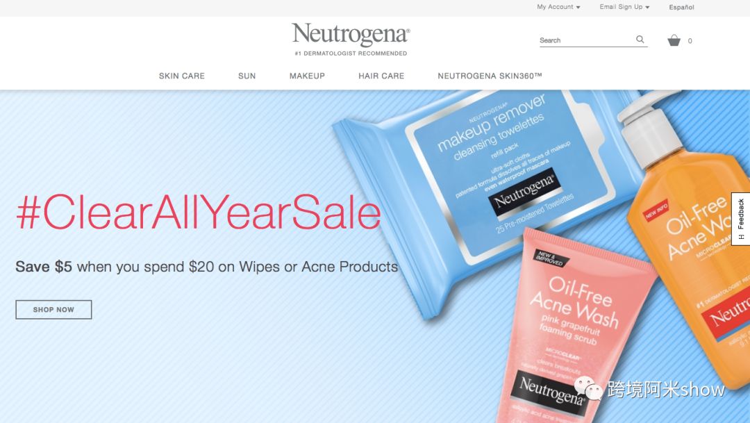 Neutrogena露得清以其Ultra Sheer Dry-Touch防晒霜为主导,持有亚马逊的Choice标签,长期保持16%的市场份额。