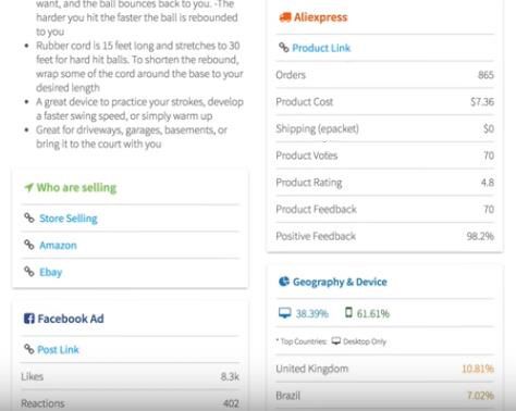 卖家会利用Facebook搜索、竞争对手分析、Pexda等工具进行研究,找到那些适合自己受众的潜在爆品。