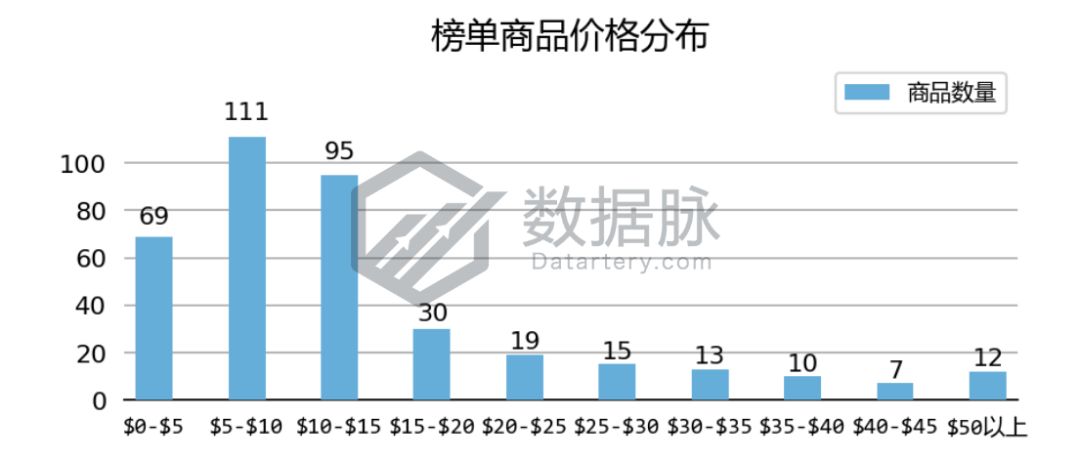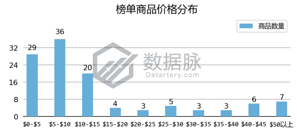 上周 Office Products 品类 Best Seller 榜单商品最高价$139.99, 最低价$0.70,平均价格$16.53。骆探长(shujumai.com)发现,在上榜的商品中, 骆探长(shujumai.com)发现,其中定价在$5.00-$10.00价格区间的商品数较多,占了上榜商品总数的31.03%;同时,也有不少上榜商品价格分布于$5.00以下以及$10.00-$15.00区间内,分别占上榜商品总数的25%与17.24%。在高价格段,上周有7款上榜商品价格超过了$50.00,占比6.03%。相比该品类的上期分析,该周进榜Best Sellers榜单的商品平均价格有所反弹,相对高价的商品进榜机会回升。