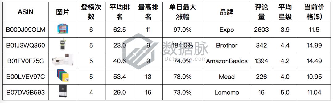 此外,品牌为Mead的一款彩色活页笔记本套装也在上周对榜单发起冲击,一周中5次进入Movers & Shakers榜单,位居商品综合排名第三。