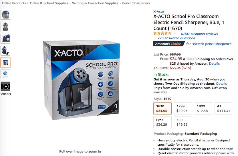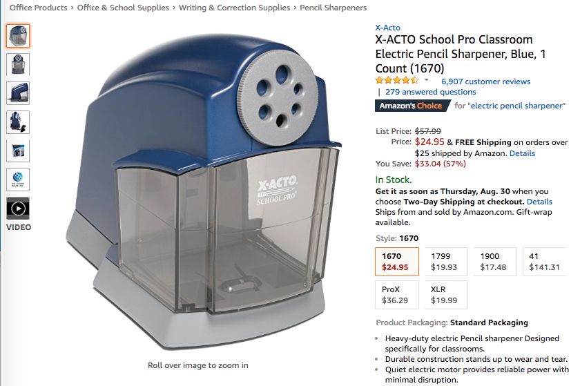 此外骆探长(shujumai.com)发现,品牌X-Acto的电动卷笔刀也在上周多次进入Hot New Releases榜单前五,以4.29的平均排名跻身商品综合排名第四;
