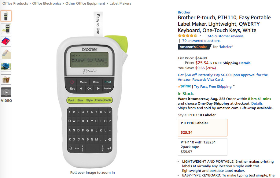 于此同时骆探长 (shujumai.com)发现,由打印机大品牌Brother推出的一款标签打印机产品在上周的表现同样亮眼,7天内5次跻身Movers & Shakers榜单,并取得了23.0的较好平均排名,一周内的BSR单日最大涨幅达184%,目前该商品拥有342条消费者评论,平均评论星级4.4,后续的市场空间值得关注。