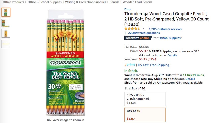 可以看到,在上周Office Products品类的Best Seller榜单中, 品牌Dixon的木质石墨铅笔30件套装成功连续7日位居榜单首位,以绝对优势取得商品综合排名第一;